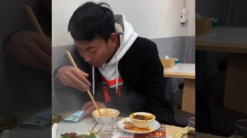 Di sebuah restoran, seorang pria melakukan percobaan pada temannya, yang terus-menerus asyik dengan ponselnya.
