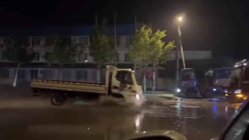 Menyeberangi jalan yang banjir dengan sepeda motor