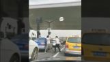 Gembala Jerman menyerang seekor anjing kecil, Sementara dua anjing lain menyeret pemiliknya ke pertarungan.