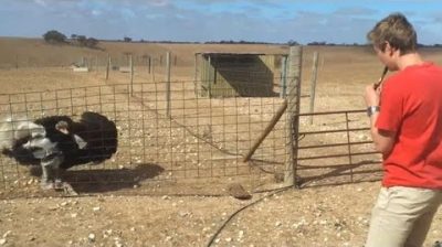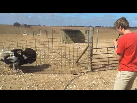 Seekor burung unta bereaksi sangat aneh terhadap suara seruling