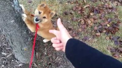 Shiba Inu Kibo saya yang berumur 3 bulan belajar dengan sangat cepat! Ini adalah salah satu dari banyak trik yang dia pelajari sejauh ini.