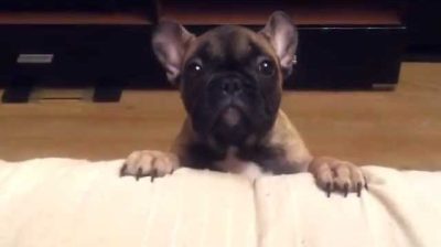 Bulldog Prancis ini pasti mengetahui peraturan rumah tetapi meminta pemiliknya untuk membuat pengecualian. Awalnya dia menggeram sebentar, tapi kemudian memprotes dengan keras seperti anak kecil.