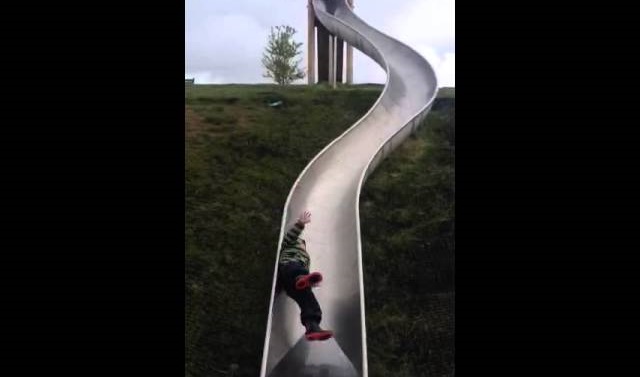 Seorang anak memulai perosotan yang sangat berbahaya. Anak laki-laki kecil itu terlempar ke dindingnya di setiap belokan, yang jelas belum banyak diteliti. Untung, anak kecil itu tidak terluka setelah terjatuh.
