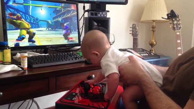 Seorang ayah membiarkan bayinya yang berusia 6 bulan memainkan video game Street Fighter V dengan pengontrolnya. Bayi itu akan berhasil dengan sedikit keberuntungan untuk memenangkan semua perlombaan dalam cerita karakter 'Birdie'. Sang ayah mengatakan video itu tidak palsu, sederhananya bayi berhasil membuat gerakan 'kuat' dari karakter tersebut dengan menahan tombol selama beberapa detik.
