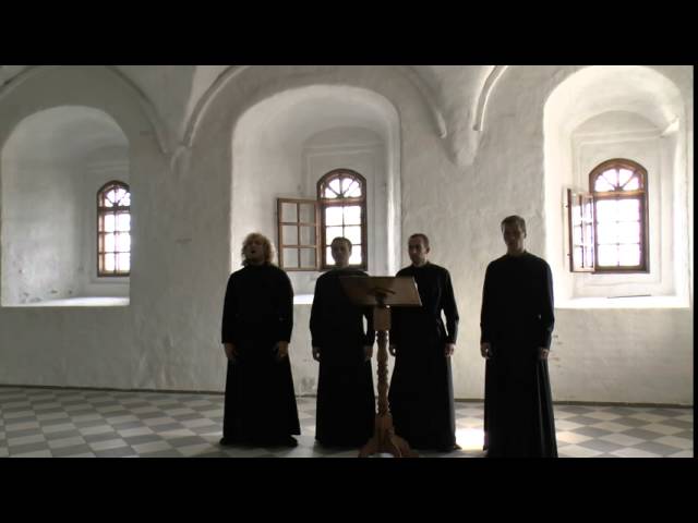 Empat biksu menampilkan 'Kristus Bangkit' dalam gaya Bizantium dan bahasa Yunani, di Biara Alexander Svirsky di Rusia. Akustik alami di sekitar tempat itu sungguh memukau.