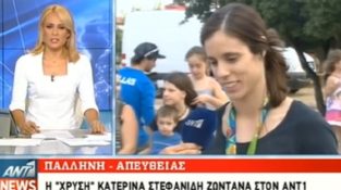 Juara Olimpiade Katerina Stefanidis menanggapi jurnalis ANT1 dengan tepat, ketika dia mengatakan kepadanya bahwa dengan kesuksesannya dia berhasil membuat jurnalis dan masyarakat lebih sering berurusan dengan olahraga Yunani.