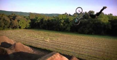 Lompatan sepeda gunung dan sepeda motor yang mengesankan oleh pembalap Spanyol Andreu Lacondeguy