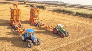 Dalam video ini, kita melihat dua 'penumpuk' bal jerami mengumpulkan bal di ladang gandum, di Yorkshire, Inggris. Tembakan udaranya cukup mengesankan.