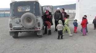 Mengangkut anak-anak di Mongolia, itu mudah. Siapa bilang perlunya bus?