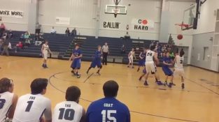 Dalam pertandingan kejuaraan bola basket sekolah menengah di Amerika Serikat, seorang pemain mencetak gol secara tidak sengaja dengan cara yang paling tidak mungkin...