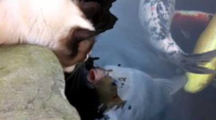 Timo (8 bulan) bertemu koi untuk pertama kalinya dan…ingin memeluk mereka. Memang benar apa yang mereka katakan tentang kucing Ragdoll, mereka sangat ramah dan berteman dengan semua orang.