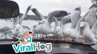 Burung Camar Putus asa Mencoba Makan Kentang Goreng