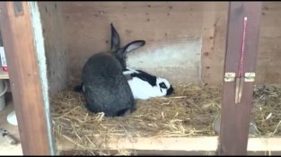 Seekor kelinci kawin selama 3 detik dengan pasangannya, dia menjadi terlalu gembira dan terjatuh.