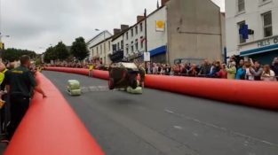 Beberapa momen lucu dari Tandergee Soapbox Derby tahunan di Irlandia Utara. Para peserta mengikuti kendaraan improvisasi dan harus mengatasi serangkaian rintangan sulit sebelum mencapai garis finis.