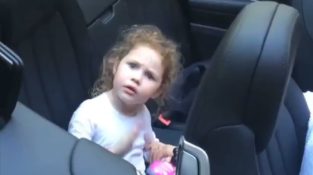 Seorang paman menakuti keponakan kecilnya yang duduk di belakang mobil convertible, sambil menutup atap matic mobil. Ayahnya di sebelahnya terdengar berteriak, 'dia akan memakanmu!”.