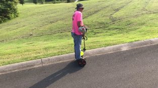 31 Juli, 2018 / Mooresburg, Tennessee, USAMemakan subdivisi memakan waktu terlalu lama, jadi saya memutuskan untuk mempercepatnya. Gulma memakan tepi jalan di Segway-Ninebot.