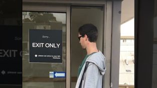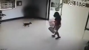 Di Tiongkok, tiga anjing berturut-turut melakukan kesalahan yang sama dan menabrak pintu kaca, sambil berlari menuju pintu keluar sebuah gedung.