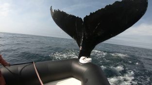 Pada tanggal 2 September 2018 di Pulau Brier, Nova Scotia, Kanada, seekor ikan paus menabrak perahu karet dengan ekornya yang panjang.