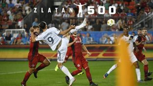 Zlatan Ibrahimović bergabung dengan Cristiano Ronaldo dan Lionel Messi sebagai pemain aktif yang mencetak 500 gol dalam karirnya, dengan gol luar biasa melawan Toronto FC.