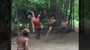 Pertunjukan sepak bola yang luar biasa oleh para atlet muda di sebuah desa di Myanmar.