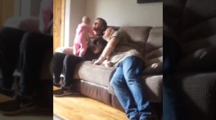 Seorang pria mengerjai ayahnya, berpura-pura bayinya terlepas dari tangannya.