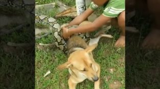 Anak-anak menyelamatkan seekor anjing dari ular boa
