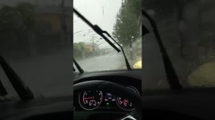 Seorang pria Italia yang baru saja mengendarai mobil barunya di kota Bolzano, Italia, dihadapkan pada badai es parah yang melanda kota itu pada tanggal 6 Agustus.