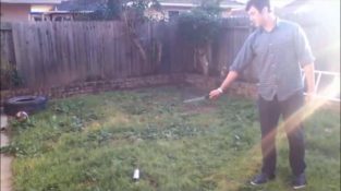 Seorang pria mencoba memukul cat semprot dengan pisau. Apa yang mungkin salah;