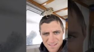 Nelayan menyelamatkan seekor burung kecil yang tersapu angin kencang dan berakhir di air sedingin es.