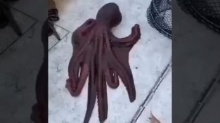 Seekor gurita berhasil melarikan diri dari perahu, melewati lubang yang sangat kecil.