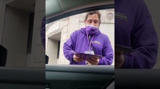 Seorang pria yang bekerja untuk World of Illusion Museum di Los Angeles, California, menggunakan teknik inovatif untuk membagikan selebaran kepada orang yang lewat di jalan. Lucu dan efektif!