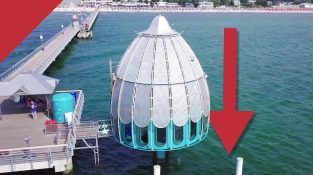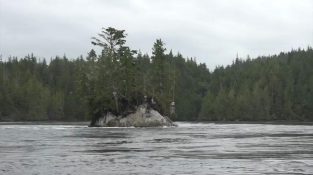 Arus pasang surut yang kuat di sekitar pulau kecil di British Columbia, Kanada dan pergerakan kamera, mereka menciptakan ilusi bahwa pulau itu adalah batu besar yang mengapung di lautan.