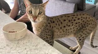 Ini adalah kucing Savannah, persilangan antara kucing domestik dan serval. Kucing Savannah merupakan kucing terbesar di dunia.