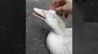 Seekor bebek menikmati pijatan kepala yang menyenangkan.