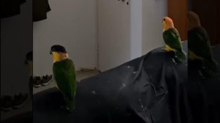 Tiga ekor burung beo menyambut pemiliknya saat memasuki rumah.