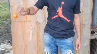 Roket kembang api kecil akan diarahkan tepat ke kepala anak laki-laki.