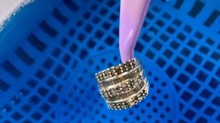 Cincin tua ditempatkan di pembersih ultrasonik.