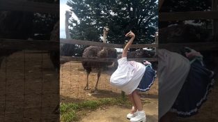 Gadis di Jepang ini sukses meniru burung unta, dan burung unta asli dibuat bingung oleh anggota baru perusahaan.