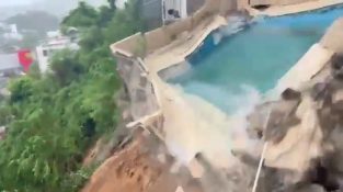 Sebuah kolam renang runtuh di sebuah rumah di Acapulco, Meksiko, dari tanah longsor yang disebabkan oleh Badai John. Badai besar melanda pantai Pasifik selatan Meksiko, menyebabkan tanah longsor dan menumbangkan puluhan pohon.