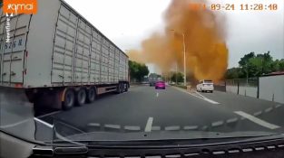 Kotoran manusia dimuntahkan ke udara setelah selokan pecah, dan menabrak mobil yang lewat di Nanning, Tiongkok.