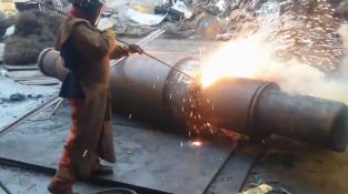 Memotong baja padat dengan tabung api