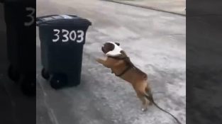 Salah satu aktivitas favorit English Bulldog ini adalah menyerang tong sampah.
