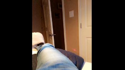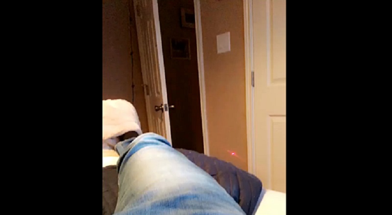 Un uomo disteso sul letto annoiato alzarsi e spegnere la luce. Fortunatamente, Egli conosce un trucco originale. Usa un puntatore laser rosso per guidare il suo cane verso l'interruttore...