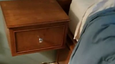 Un lato del letto cassetto apparentemente comune, ma ha uno spazio nascosto.