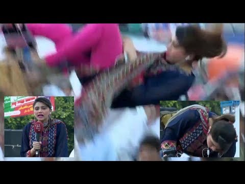 Esclusiva video femminile pakistana TV giornalista caduta durante la Live Diretta PTI Jalsa nel mese di Ramadan