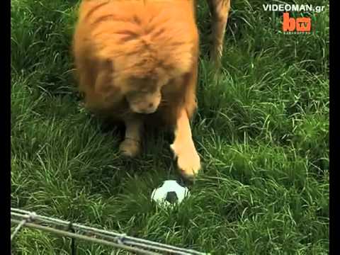Un leone nel giardino zoologico di Johannesburg, Egli ama giocare con la palla.