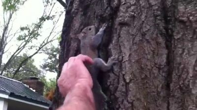 Un uomo in Tennessee rilascia un piccolo scoiattolo in un albero, dopo aver salvato e curato per qualche giorno. Mette il piccolo roditore sul tronco, i piccoli tocchi e dice addio mentre la moglie registra la scena. Ma Tom il gatto non era lontano, Afferrò lo scoiattolo in bocca e si allontanò. Lo scoiattolo gatto lo ha rilasciato poco dopo davanti alla porta della casa.