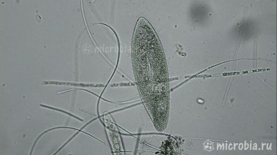 Un paramecium feriti (organismo unicellulare che vive in acqua dolce), maul da un gruppo di ciliati carnivori (litonotus genere). Il paramecium feriti quando entrano in contatto con la bocca predatore velenoso, scappa brevemente, ma la ferita era troppo grave.