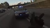 Una macchina della polizia attraversa un semaforo rosso e provoca un incidente