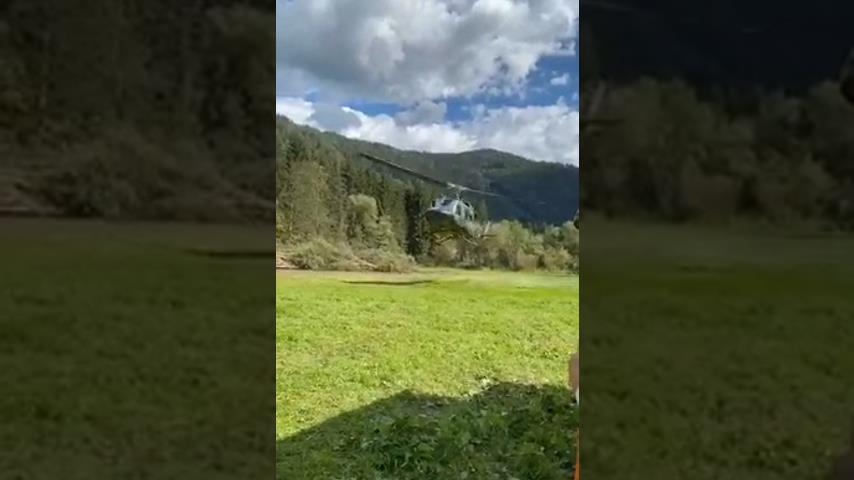 L'atterraggio di un elicottero causerà un incidente a un uomo che osserva da lontano.